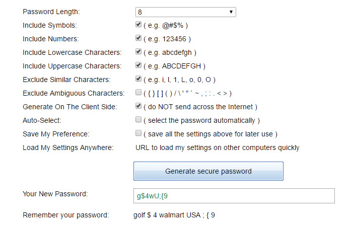 You can hit up passwordsgenerator.net, select a password length, tick some boxes and click Generate secure password and you’re done.